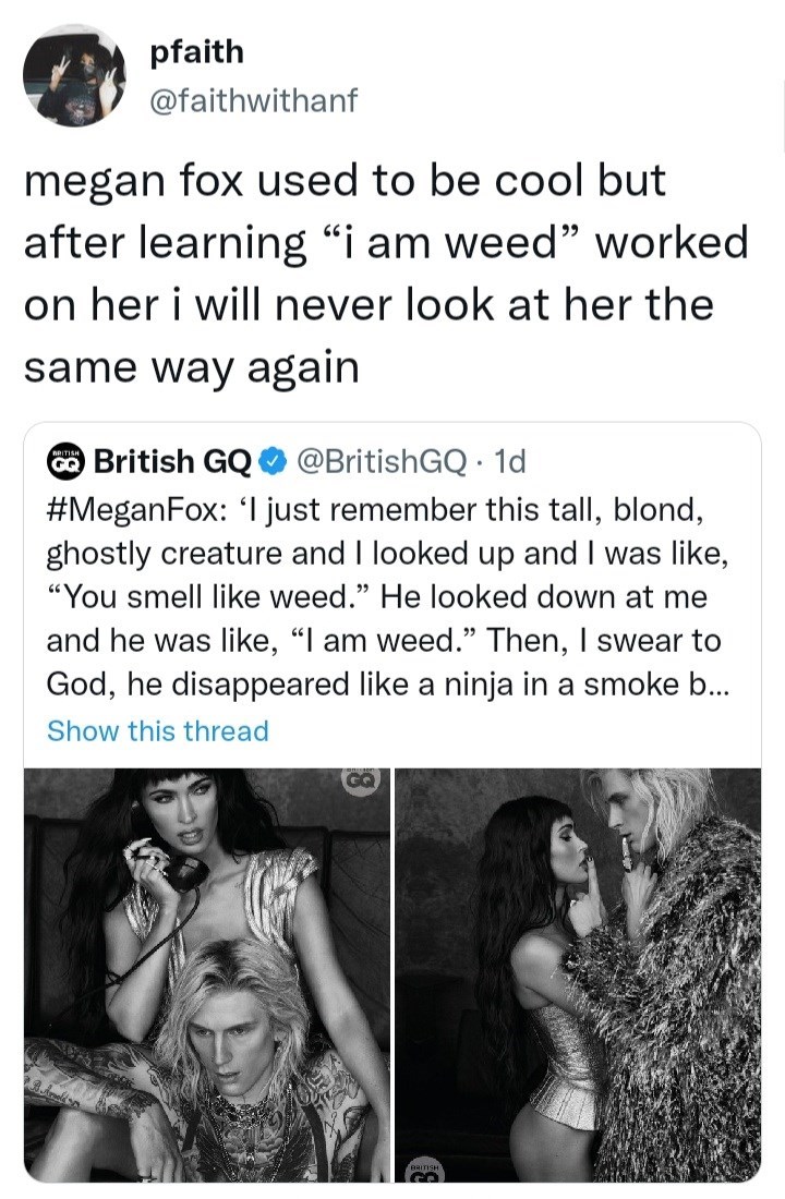 Obnoxious Megan Fox And Machine Gun Kelly Interview Inspires Roasty Response Memebase Funny Memes